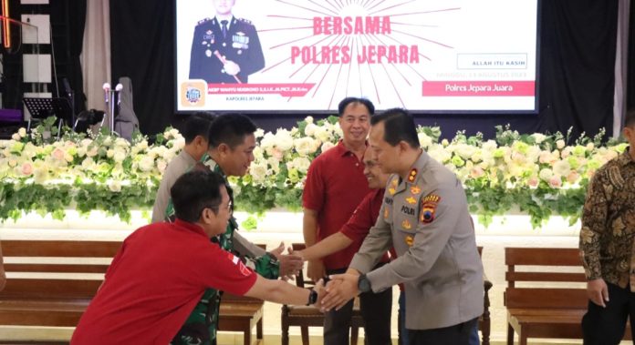 TM Jepara – Dalam rangka mendekatkan diri dan menyerap aspirasi masyarakat, Polres Jepara menggelar kegiatan Minggu Kasih yang digelar di Gereja Bethel Tabernakel Alika, Jepara, Minggu (13/8/2023).