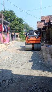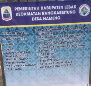 TM Lebak,-Pengerjaan fisik rabat beton jalan poros desa yang berada di kampung angsana dan kampung babakan rumbut Desa Nameng Kecamatan Rangkasbitung Lebak Banten baru beberapa pekan pengerjaannya sudah mulai ada keretakan panjang pada badan jalan,Rabu 12/06/2024.