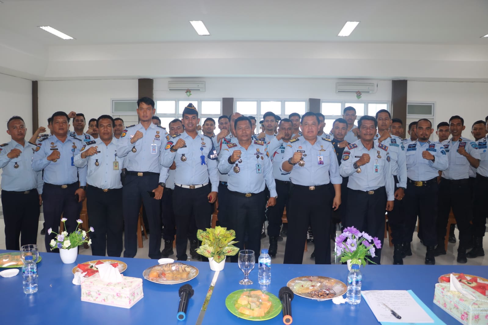 TM Rumbai – Kepala Kantor Wilayah Kementerian Hukum dan HAM Riau, Mhd. Jahari Sitepu didampingi oleh Kepala Divisi Pemasyarakatan Kantor Wilayah Kemenkumham Riau, Mulyadi kembali mendatangi Lapas Narkotika Kelas IIB Rumbai dengan tujuan memberikan arahan Penguatan Tugas Pokok dan Fungsi Petugas Pemasyarakatan.