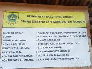 TM Kab Bogor – Rampung dikerjakan, puskesmas pembantu (Pustu) Galuga yang berada di Desa Galuga, Kecamatan Cibungbulang, Kabupaten diproyeksikan akan segera aktif beroprasi pada awal Januari 2025.
