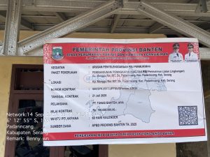 Proyek yang di danai dari APBD Provinsi Banten melalui dinas perumahandan permukiman rakyat (perkim) provinsi Banten, dengan nilai Rp. 190.050.000.- (seratus sembilan puluh juta lima puluh ribu rupiah).