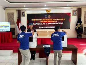 TM Lebak – Lembaga Pemasyarakatan (Lapas) Kelas III Rangkasbitung telah melaksanakan Pemilu serentak untuk memilih Gubernur dan Wakil Gubernur Banten serta Bupati dan Wakil Bupati Lebak di Tempat Pemungutan Suara (TPS) Khusus 901, yang berlokasi di Muara Ciujung Barat, Rangkasbitung, Kabupaten Lebak. (27/11)