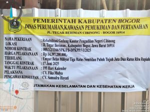 Hal itu terlihat dari kondisi terkini, Kamis (17/7/25), progres pekerjaan dari proyek Dinas Perumahan Kawasan Pemukiman dan Pertanahan (DPKPP) Kabupaten Bogor dengan pagu lebih dari 14 Miliar rupiah.