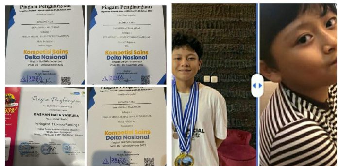 TM Makassar – Basman Nafa Yaskura, seorang siswa kelas VIII, SMP Athirah di Kota Makassar, provinsi Sulawesi Selatan, telah dinyatakan meninggal dunia pada, 24 Mei 2023 dengan cara yang tidak wajar ternyata adalah aset bangsa. Hal ini diketahui dari beberapa prestasi tingkat yang diraihnya dalam usia yang masih belia, 15 tahun.