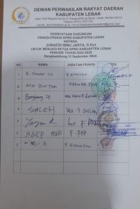 Fraksi-fraksi DPRD Kabupaten Lebak tersebut memberikan dukungan penuh dan menyatakan sikap kepada Junaedi Ibnu Jarta agar tetap menjabat menjadi Ketua DPRD di Periode Tahun 2024-2029.