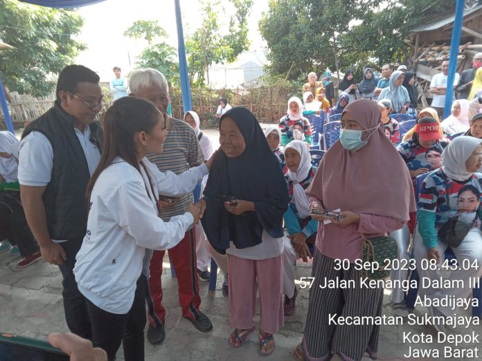 TM Kota Depok – Tak Kenal Maka Tak Sayang sudah menjadi motto Srikandi Cantik Sesuai dengan wajahnya yang cantik, caleg viral dari partai perindo pertama di kenal saat pendaftaran Bacaleg ,juga berhati mulia dengan kegiatan sosial yang sudah berjalan sebelum mencalonkan Caleg, kegiatan hari ini di Kampung AbadiJaya Rt 01 Rw 019 Kecamatan Sukmajaya , Senam Pagi kaum ibu-ibu, Kaca Mata Gratis ,Game lempar ring berhadiah dan sembako murah, pada pukul 07.00 s/d 12.00 wib. Sabtu (30/09/2023).